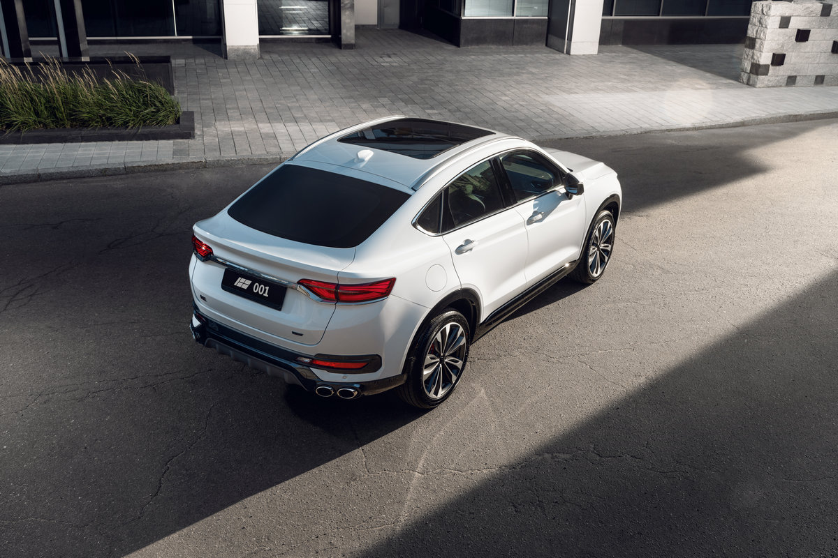 При первом взгляде на Knewstar 001 становится ясно: это Tugella. Силуэт с характерной купеобразной линией крыши остался абсолютно неизменным. Основные метаморфозы коснулись передней части: появилась новая радиаторная решетка с шестиугольными ячейками и свежим логотипом Knewstar, а также слегка видоизменился бампер, получив более выразительные воздухозаборники. Задняя часть также претерпела минимальные правки — обновилась вставка между фонарями и оформление диффузора.